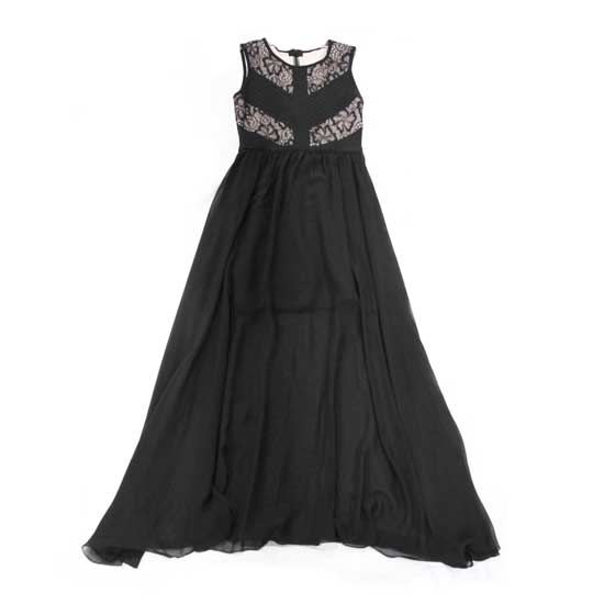 This ladies' sleeveless dress features elegant floral motifs on the front. The top-quality dress is made of silk and nylon. The empire waist and back zipper closure complete the design of this piece.