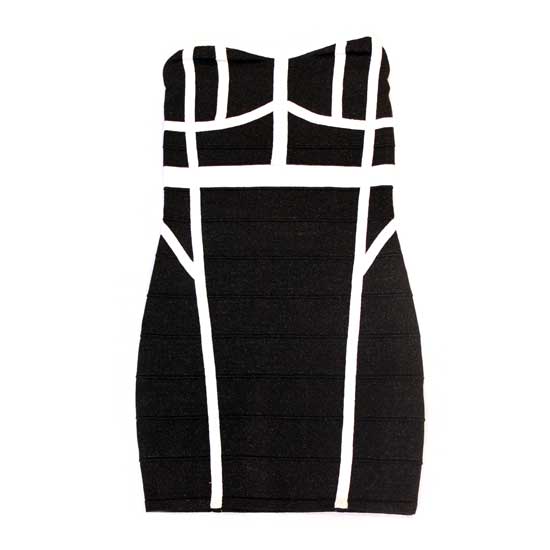 This ladies’ tube dress comes with a sweetheart front for an alluring touch. It is highlighted with white line patterns on the black background. This body-hugging tube dress showcases your seductive figure easily.