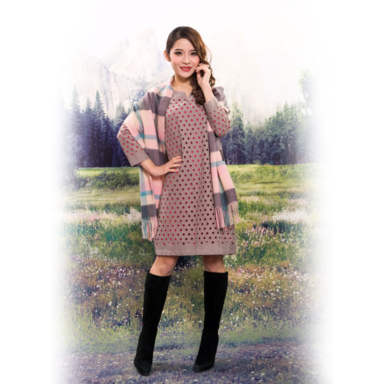 This is a ladies’ one-piece dress that features a trendy and classic style. It is designed with a classic V-neck neckline and three-quarter sleeves. The allover dot patterns add a touch of style to the whole piece.