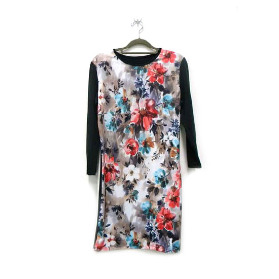 This well-designed long-sleeve dress features colorful floral prints. The finely manufactured dress delivers satisfying wearing comfort. It is a great addition to your stylish wardrobe.