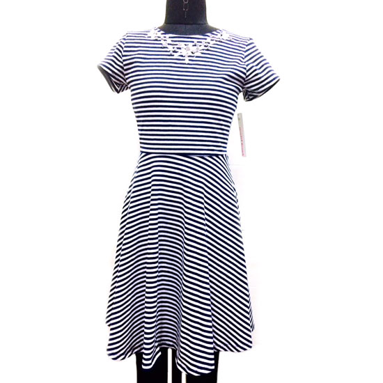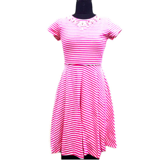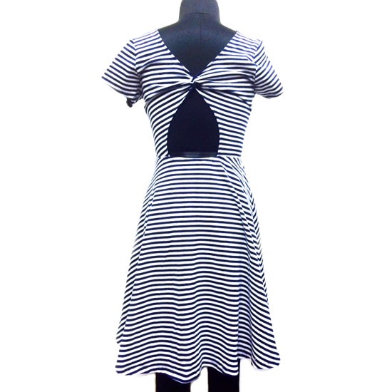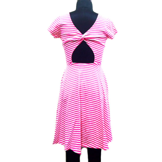 This short-sleeved dress is a great choice for fashionable ladies. It is designed with a hollow back for a unique touch. This ladies’ dress comes with delicate striped patterns for an eye-catching look.