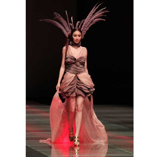 This two-toned sleeveless evening dress boasts tiers of ruffles in purple and pink, evoking a sense of vogue. The skirt is finished with a balloon hem for a flirty and sassy look. The back is skillfully designed with an ultra-long train showcasing an extra feminine aura.