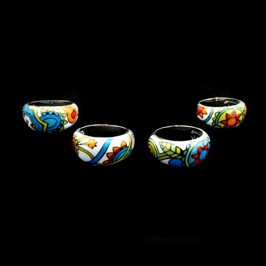 These enamel rings feature beautiful patterns for a special touch. Plated with a rhodium coating, the rings are longer-lasting. These finger rings add a strong personality to your look.