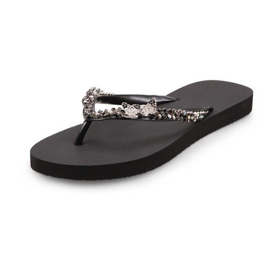 Whether you dress for a day at the beach or an evening out, this laidback yet fabulously classy flip-flop gives your outfit effortless appeal. Coming from the urban collection, this luxurious pair of flip-flops features a glittering butterfly crystal embellishment on the thong, which is meticulously stitched by hands to boast great craftsmanship.