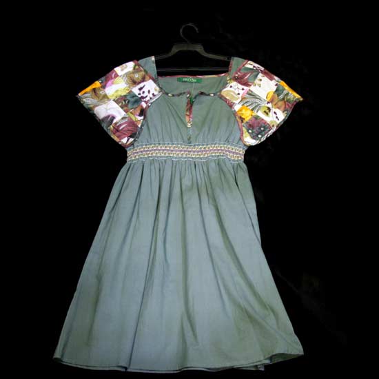 The ladies' dress is designed with eye-catching flutter sleeves in patchwork prints. It comes with a smocked waist with multi-color stitching for added style. Complete your summer wardrobe with this flattering flutter-sleeve dress.