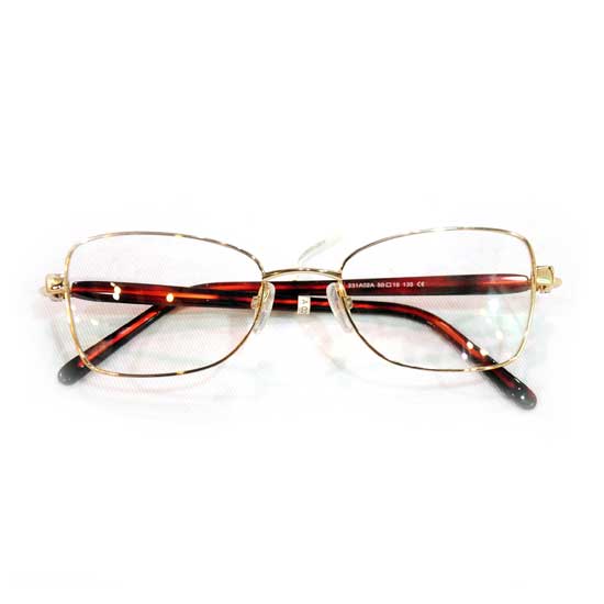 This glasses frame comes with gold-plated full rims for a shiny look. It is fitted with adjustable nose pads for wearers’ comfort. This high quality glasses frame is a great choice for women.