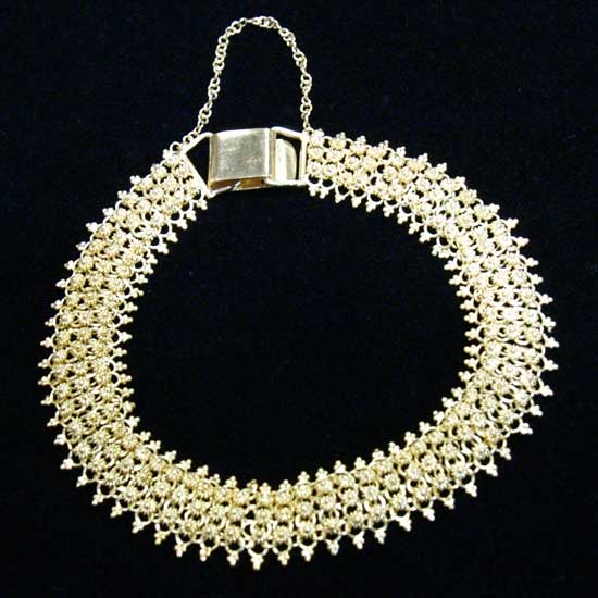 This gorgeous bracelet features a dazzling 18K yellow gold construction. It boasts a spiky design and a matching golden lock for extra security. Add this simple yet eye-catching bracelet to your jewelry collection.