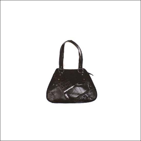 The picture show a black patchwork ladies handbag