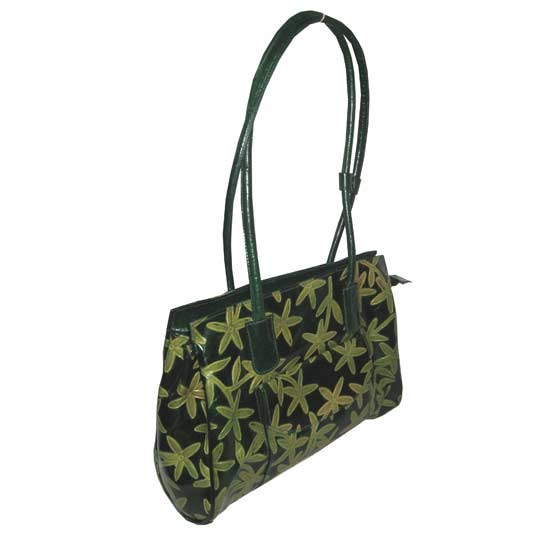 This beautiful handbag features an elegant dark green color. The floral patterns give a touch of femininity. The long straps go well with the shape of the bag. This bag is made with advanced craftsmanship. It is a great choice for ladies.