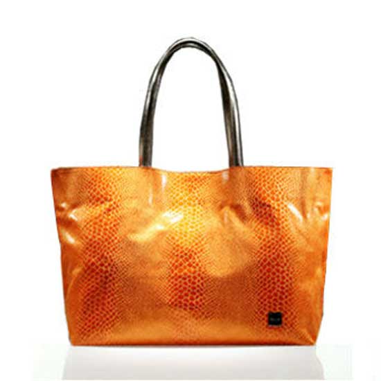 This featured handbag comes in an intense orange tone for a fierce style. With a polished bright surface, this excellent handbag features a rectangular shape and a black durable handle for a simplistic design. This handbag matches your daily style with ease.