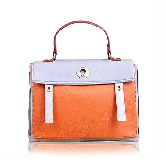 Showcased is a decent handbag coming in orange and white for an attractive look. The flap cover is paired with a round metallic closure for maintaining the bag's shape and offering enhanced security. Add this bag as one of your handbag collections.