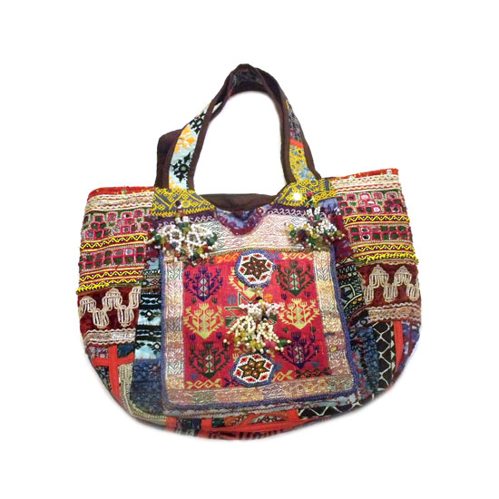 This is a ladies’ handmade handbag that comes in bright colors for a vibrant look. It is accented with embroidered details for a decorative touch. This handbag is finished with two handle straps and a large compartment.