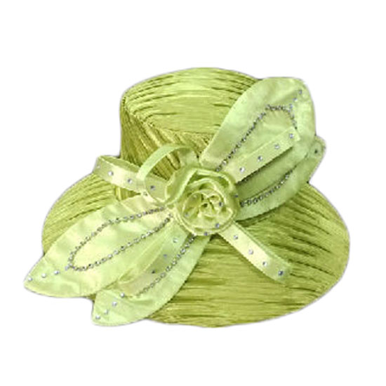 This is a ladies' hat with a green finish for a smart look. It comes with a floral embellishment on the front. It is a nice fashion accessory in autumn and winter.