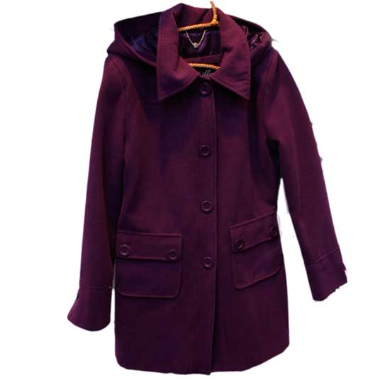 This attractive ladies' coat features an eye-catching pointed collar. The classic button-up design with flap pockets delights many consumers. This long coat keeps you warm and comfortable in every chilly winter.
