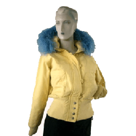 This ladies' hooded jacket comes with a padded design and a banded waist for extra warmth. The blue fur detail on the hood contrasts with the yellow jacket and delights the wearer. The fitted construction is youthful and energetic.