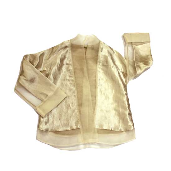 This enticing jacket for ladies features a shiny appearance highlighted with sheer and intriguing organza. It unites a succinct design with deluxe materials for charm and coziness. This distinctive jacket showcases your unique taste instantly.