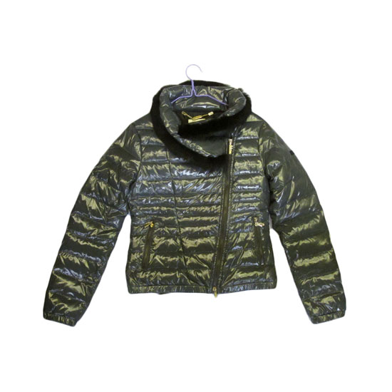 This is a down-filled jacket boasting a fashionable design. It comes with a shiny and smooth finish in allover gray. The asymmetric zip front closure adds a touch of uniqueness to this design.