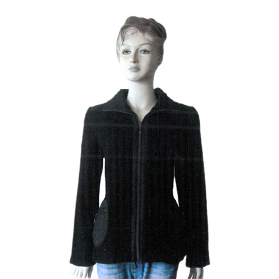 This jacket is especially designed for ladies. It comes with an allover black finish for a smart look. It is fitted with a zipper for easy wearing.