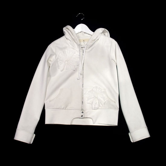This is a ladies’ jacket that comes in allover white for modern elegance. It is designed with a hoodie collar, a zippered front and long sleeves. This fashionable jacket is an ideal addition to complete your wardrobe.