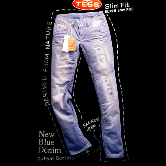 These jeans for ladies are made of 68% cotton and 33% spandex. They are characterized by a super low rise cut with a slim fit. The trousers showcase deliberate faded effects and abrasions.