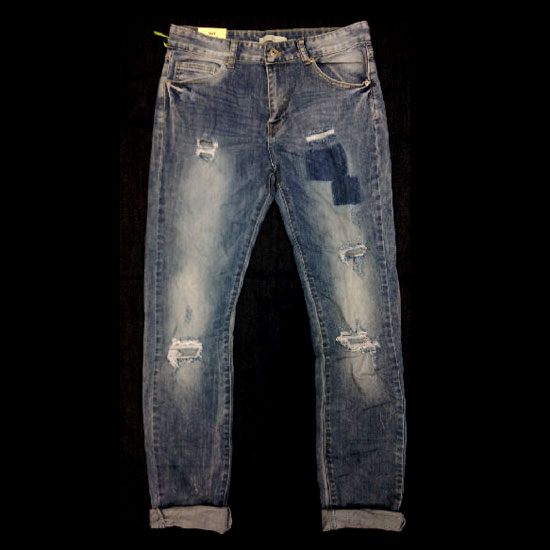 This is a pair of nicely ripped jeans with a fashionable appearance. It is made of high-quality material with excellent workmanship. This pair of jeans will delight your beloved boyfriend instantly.