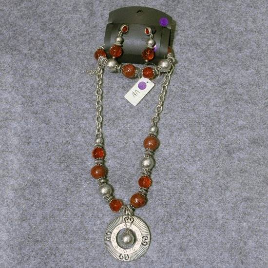 This stylish jewelry set includes a necklace, a bracelet and a pair of earrings. The red and silvery colored beads showcase a hint of exoticism. The necklace features a unique round pendant. This case pack of jewelry offers you a completely coordinated look.