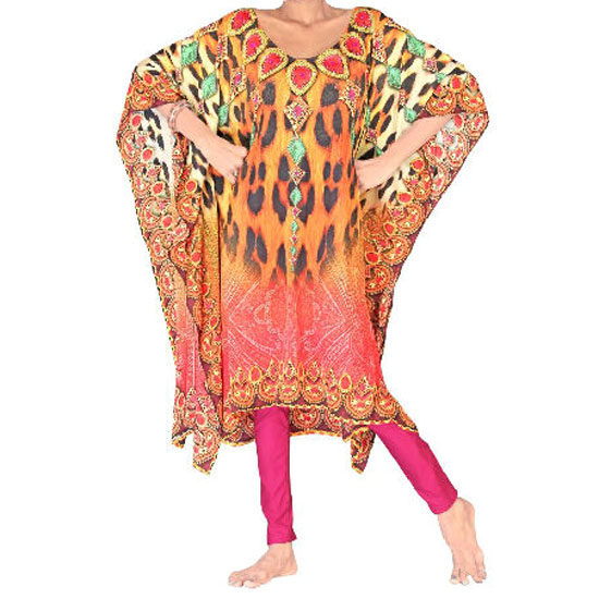 This is a ladies' kaftan coming with a leopard print pattern. It is printed by digital printing for vibrant colors and fine details. It is ideal to pair with tights and loafers.