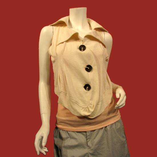 Featured is a gorgeous knitted blouse with a tailored fold-over collar. This light sleeveless blouse comes with three wooden buttons at the front opening. With the finest soft fabric, it provides refined comfort and a relaxed fit. You can layer it up over a T-shirt or dress.
