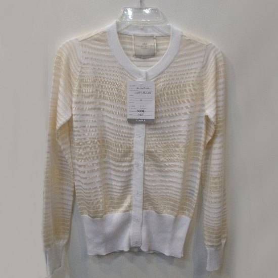This stylish cardigan comes with a five-button front. It features an all-over stripe pattern in beige color. The banded cuffs and hem are for better fitting. The fitted bodice flatters any body shape. Add interest to your wardrobe with this round-neck cardigan.