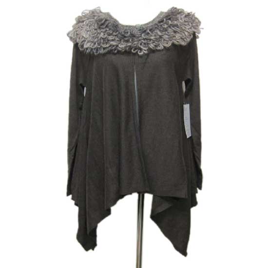 This ladies’ cardigan features crochet fringes around the neckline for a fluffy look. The draping hems make this cardigan great for layering. Style your appearance with this charming cardigan.