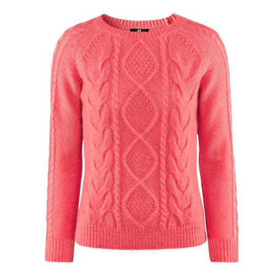 This ladies’ knitted pullover comes in captivating pink, which grabs people’s attention effortlessly. It features a ribbed round neck and long sleeves with ribbed cuffs. The cable knitting pattern on the front lends extra style.