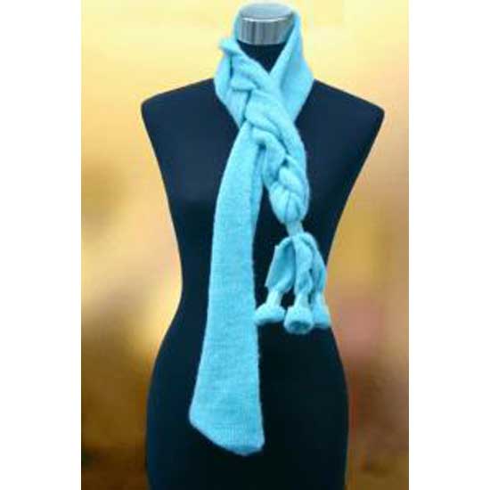 The featured knitted scarf is uniquely designed. It comes with braided patterns on one half, showcasing an extraordinary style. The end is adorned by fringes for added uniqueness. Wear this elegant scarf to show your personal style.