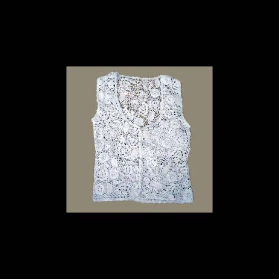 This is a white colored ladies knitted vest