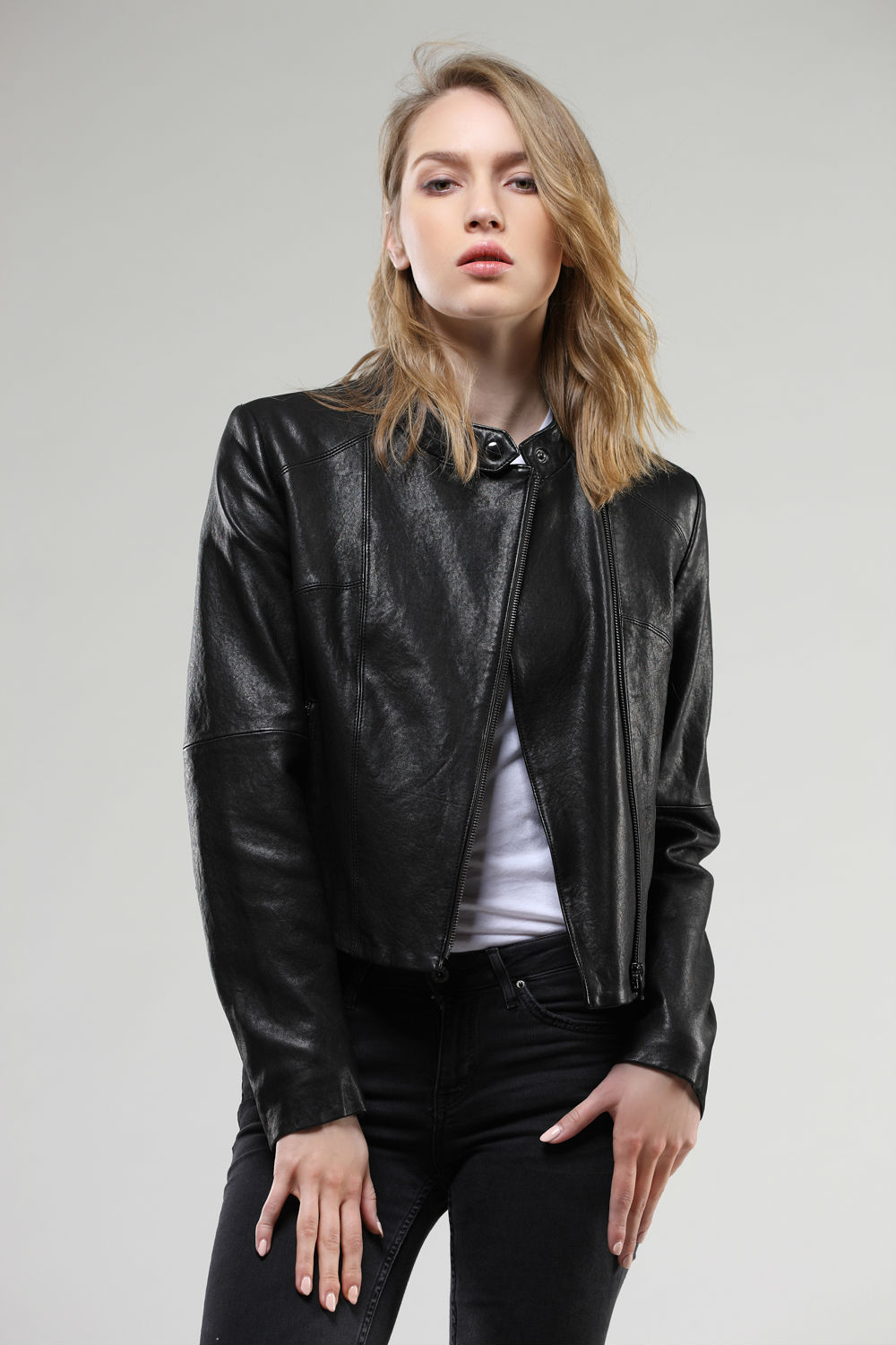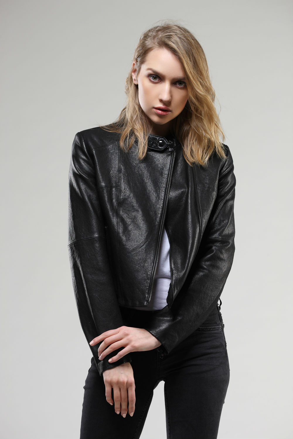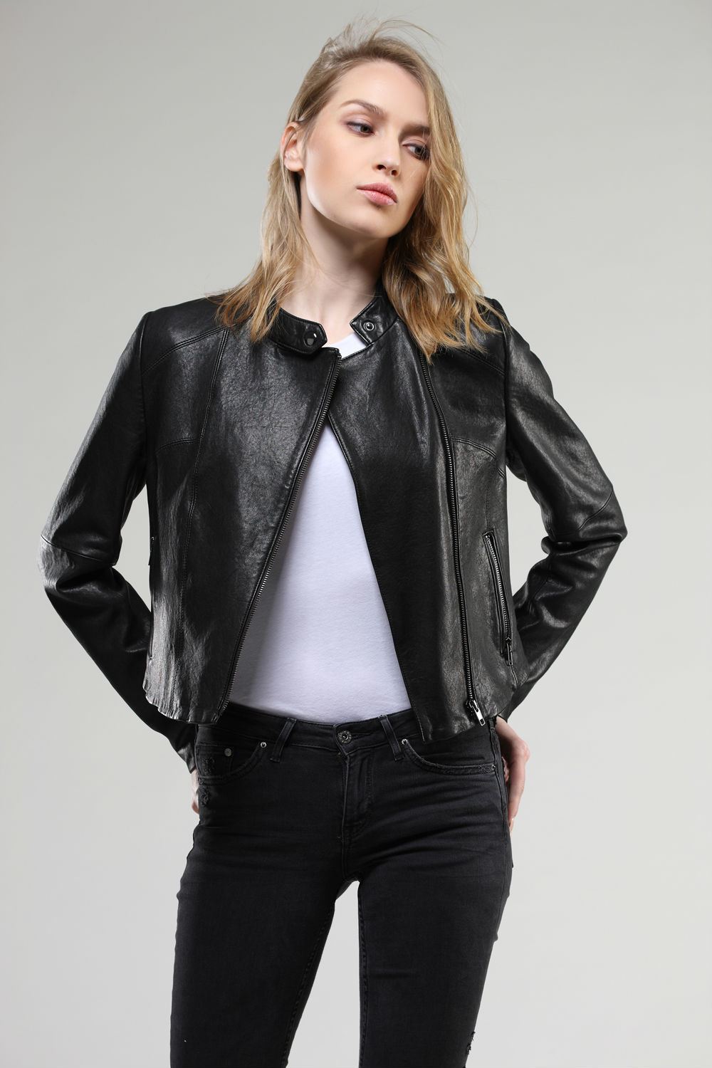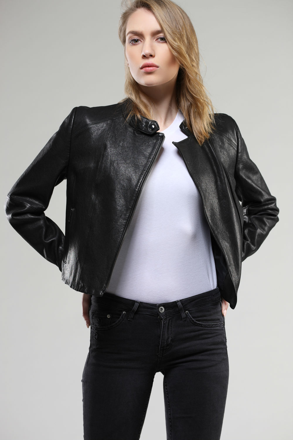 Trends come and go, but racer jackets have a staying power that make them timeless wardrobe staples that are hard to be replaced. This racer jacket, with a classic design and exquisite quality, is the only one you need in your wardrobe. Coming in a sharp and sleek silhouette with a snap collar, this outer exudes a strong and intimidating aura. Throw this over a slip dress for an edgy and cool model-off-duty look.