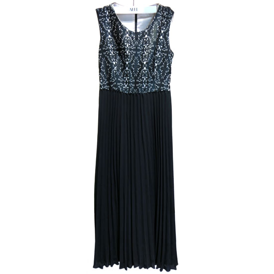 This long dress combines a beautiful, tribal-styled geometric tank with a pleated skirt. The dress shows your well-proportioned figure. This dress can be worn with a waist-belt for a trendy style.
