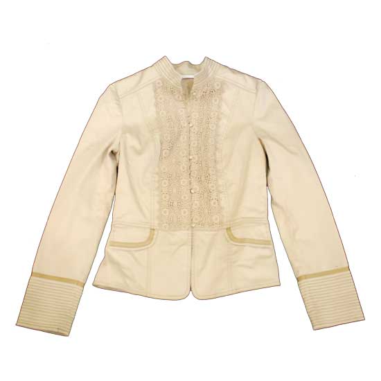 This ladies' jacket comes with long sleeves and a standing collar. The simple yet fashionable design and the extraordinary tone of ivory white make it ideal for showcasing your unique taste. It goes well with clothing in different colors.