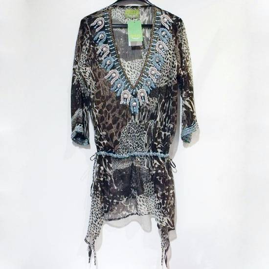 Featured is a long-sleeve tunic with a deep V-neckline and an irregular hemline. The hand-beaded embellishment along the cuffs, waistline and neckline gives out a sense of elegance. The all-over leopard pattern makes it a fun and stylish addition to the wardrobe of all ladies.