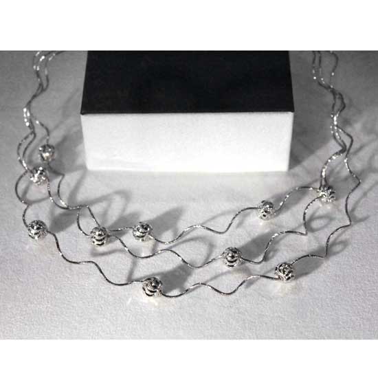 This displayed necklace showcases a unique wavy style for added attractiveness. The beaded accents are irregularly arranged to help create a stylish look. This bold and chic piece is sure to upgrade your ensemble in an instant.