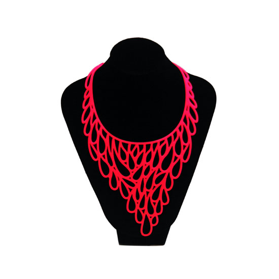 This ladies' necklace comes with a charming and stylish appearance. It comes with sophisticated water-drop patterns in neon pink. This necklace with add a touch of uniqueness and style to your outfit.