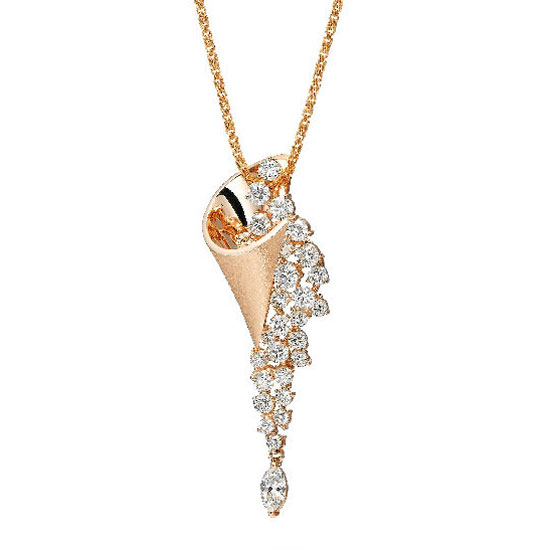 This necklace is inspired by the shape of a seashell. The stones shine a bright hue thanks to their brilliant cuts. It is excellent to complement your casual look.
