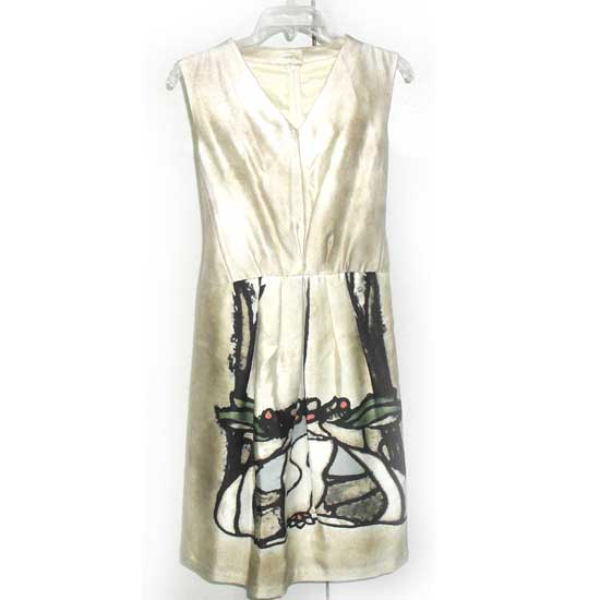 Showcased is a trendy one-piece dress in a soft silk construction. The artistic prints on the bottom add a stylish touch. This pretty dress is the perfect addition to your summer closet.