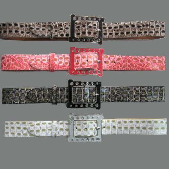 This ladies' fashion belt bestows an expensive crocodile-skin design with a rectangular-shape buckle. The single prong functions perfectly well with the pierced holes, offering you a blissfully comfortable fit. This ravishing belt accents your alluring curvatures in a dress or even your favorite T-shirt.