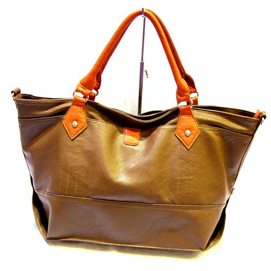 This PU handbag features a mud-brown body with bright orange handles. Water will totally drip off from the water-repellent surface. Throw this PU handbag over your shoulder and head out for the day.