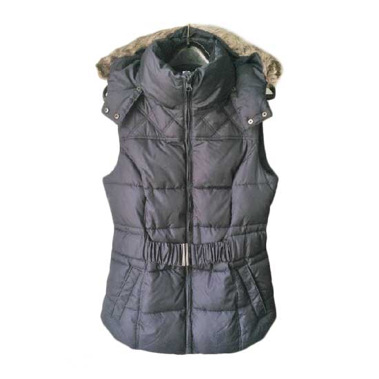 This padded vest is specially designed for fashionable ladies. This ladies’ vest comes with an artificial fur hood for a stylish touch. This ladies’ padded vest features a zip closure, a matching belt and two side pockets.