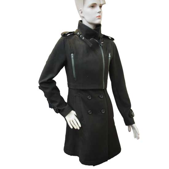 Displayed here is a parka coat that is designed for ladies. It is finely made of 60% wool and 40% polyester, offering great wearing comfort. This all-black ladies' parka is a classic addition to your winter wardrobe.