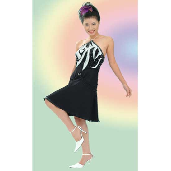 This ladies’ party dress features two-tone design of black and white for a classic look. Halter neck adds enhanced charm to the sexy dress. This knee-length dress is an enchanting choice for parties.