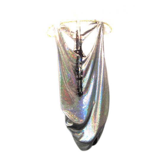 The top comes with a black bead necklace.