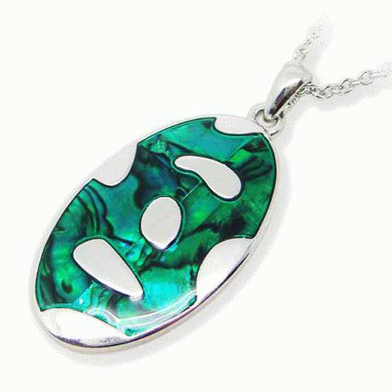 Highlighted is an exquisite pendant coming in an oval shape. The pendant is set with natural paua shell, polished to give out a gorgeous luster. The metal setting is finely polished to showcase extra glamor.