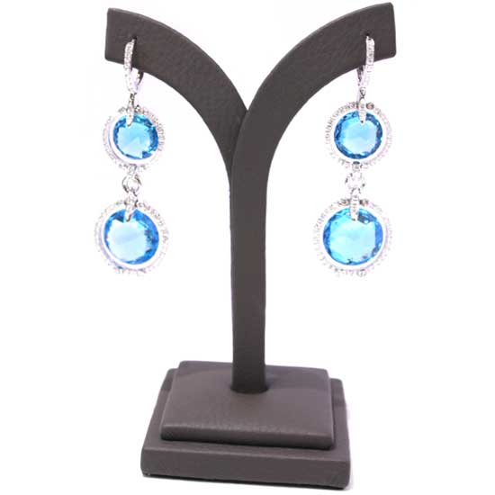 The semi-precious stones in clear blue color will bring you a peaceful feeling. The stones look exceptionally gorgeous with the glittering silvery settings and loose diamonds. Refresh your look with this glamorous earrings.