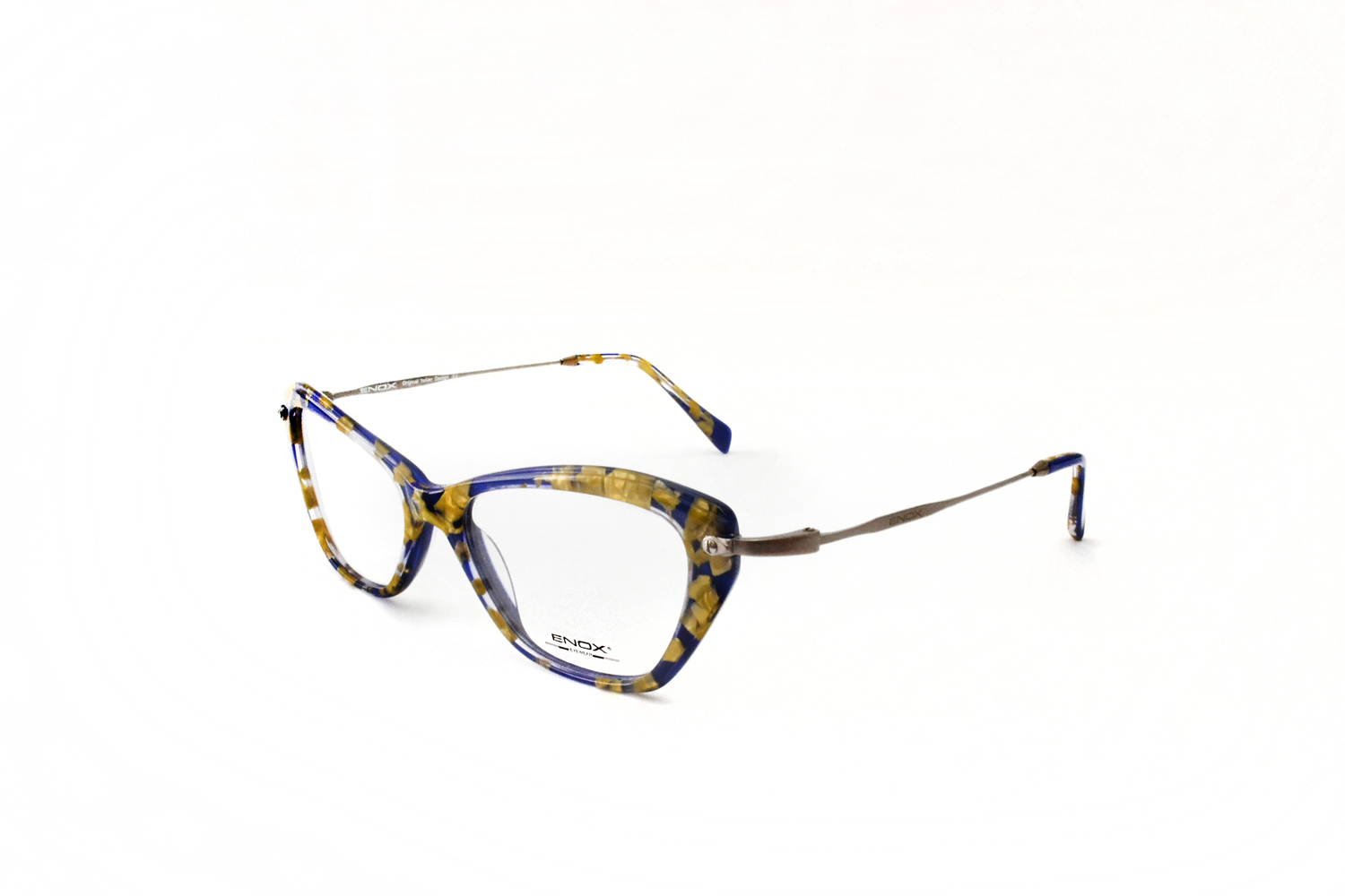 This ladies’ optical frame is really special in shape and materials. The acetate is the result of a sophisticated and stilish chromatic research, of the nearly marbled shades of colour and it goes together with the refined design of the metal temples. Available in 6 colours, it is the perfect frame for people who want to be different.